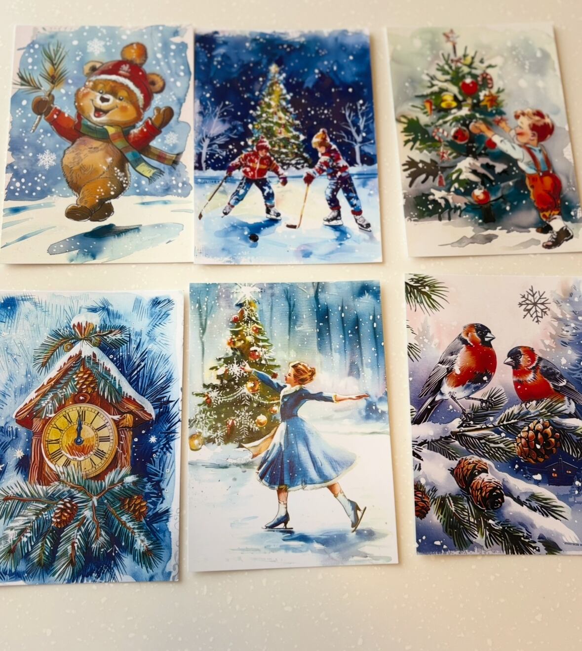 ソビエト時代の冬をテーマにした、美しいイラストのポストカード6枚セットです